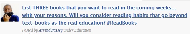 If one has developed a love for reading one cannot restrict oneself to text books. As my title of this post suggests, text book reading is reading out of obligation. Even for those who want to excel in their academic fields, they have to read stuff beyond text books to deepen their knowledge and see things from different perspectives.